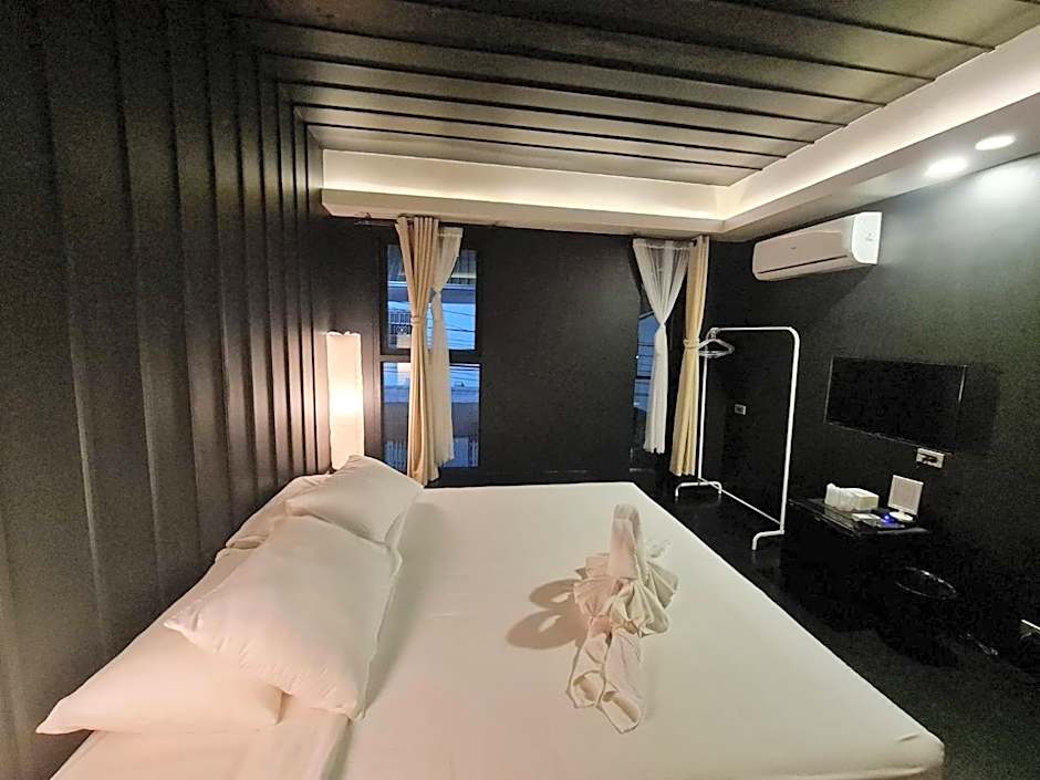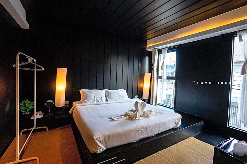 Featuring a dark wall and ceiling, the cozy double room comes with candles and lanterns that lights up the room for a good night's sleep.